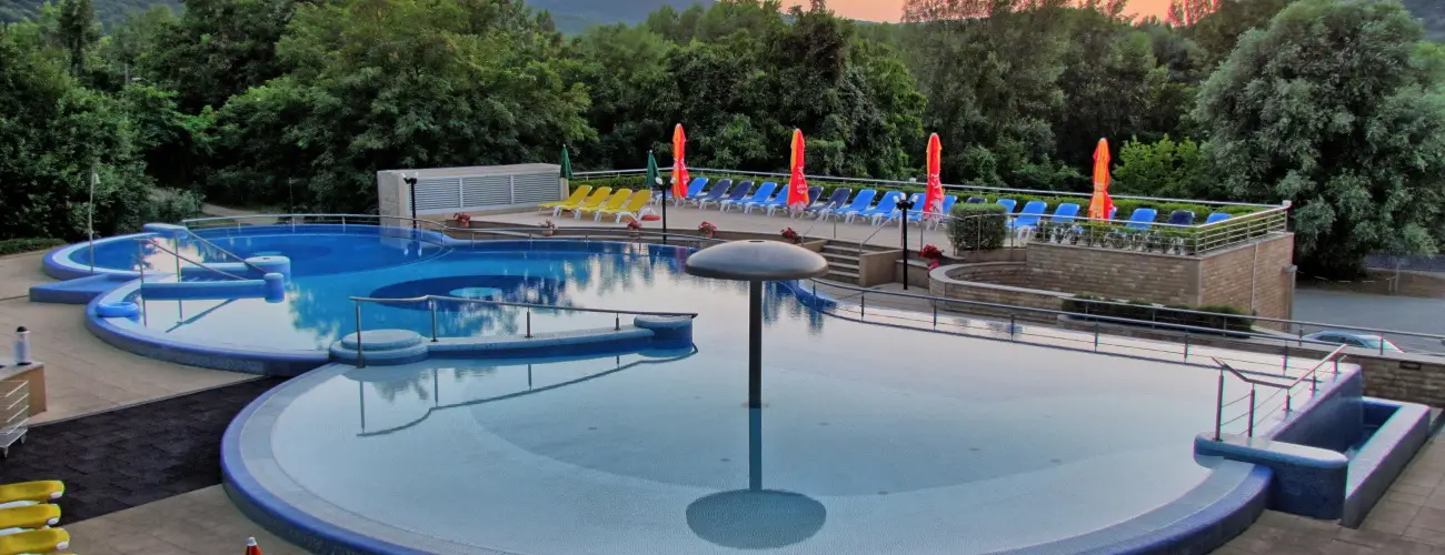 fedett úszómedence • szabadtéri úszómedence • szauna • Fitnessz center • Spa & wellness center • fodrászat • kozmetika • manikűr • masszázs • pedikűr • pezsgőfürdő • szépségszalon • szolárium • termálvíz, illetve gyógyászati létesítmény • élménymedence • gőzfürdő • infraszauna • merülőmedence • gyerekmedence • hammam • sodrómedence • aromakabin • napozóterasz • Gyermekpancsoló • Élménymedence • Ülőmedence I. • Ülőmedence II. • Úszómedence • Acapulco nyári strandmedence